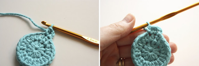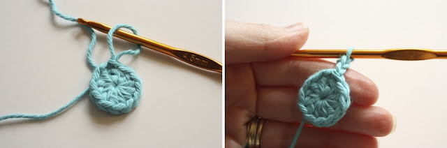 Then make a slip stitch into the top of the starting chain of 2 to finnish the round.