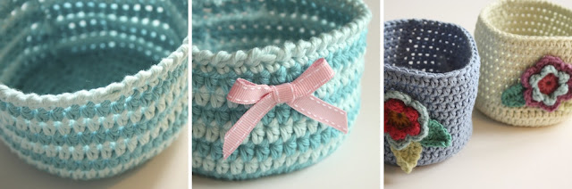 Make as many rounds like this as you want, to get the height of basket that you need. Remembering to keep changing your yarn if you wants stripes.
