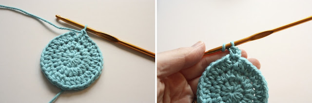 Once you are round to the beginning, make a slip stitch into the top of the starting chain of 2 to finish.