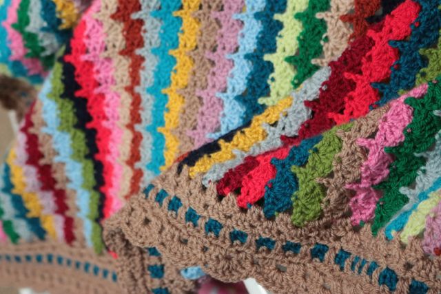 Regular readers will know that it's my usual practise to list a few details about my blankety makes. Yarn types and colours, what pattern I used, the size and so on. I will be giving a bit more information at the bottom of the post, but I do hope you won't be too disappointed to hear that due to the scrappy nature of this project, I'm really not 100% certain of all the yarn brands and colours I used.
