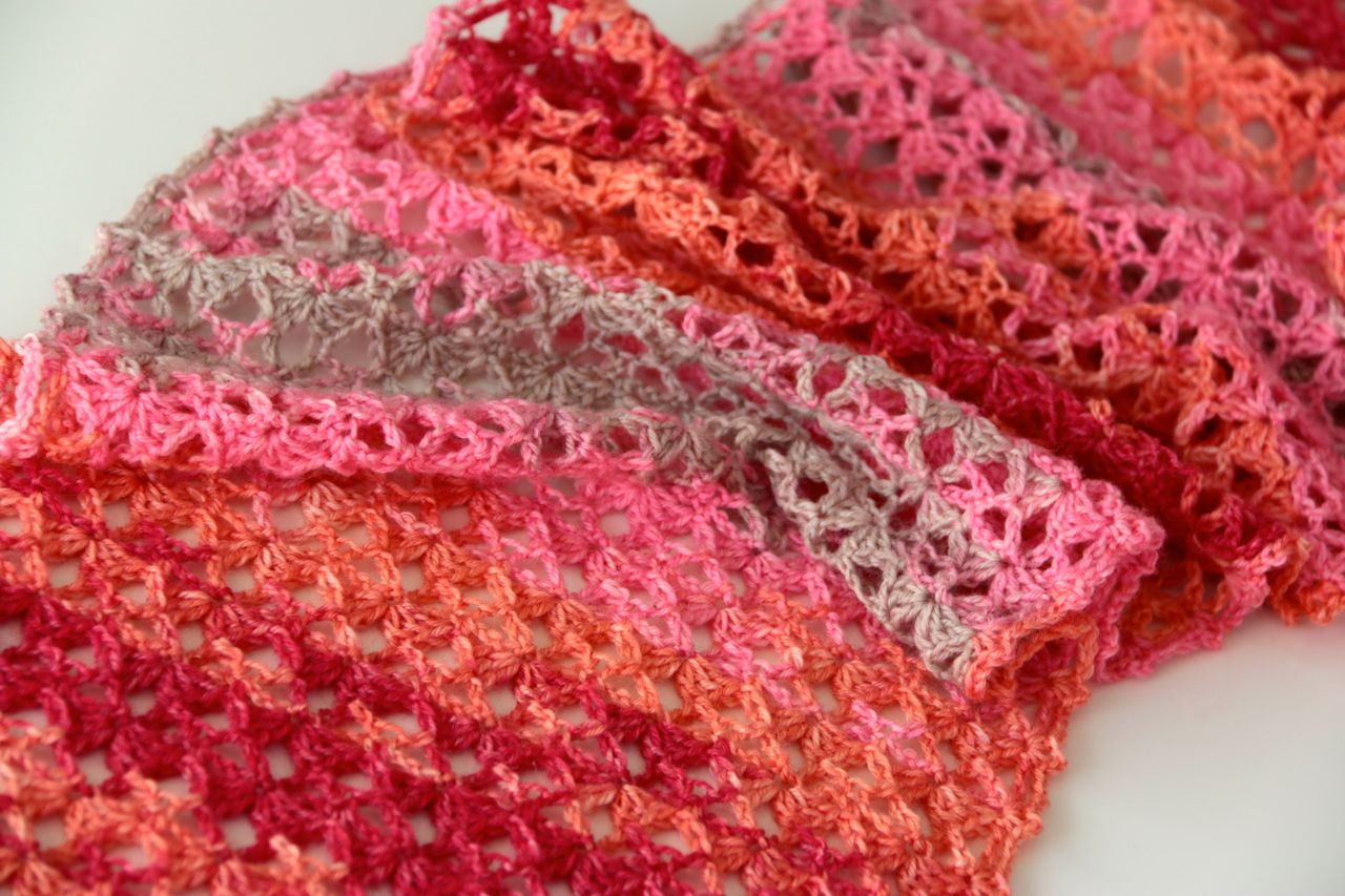 The colour I've used for my scarf is the Olympus colourway and it's interesting to see how the stripping comes out in crochet. I think it's fair to say that the stripping of the colours is more intended for socks. Certainly you get a really lovely pattern of stripes when you work up socks anyway. I'm not sure how well they work on my scarf, a little too random for my taste really but I am intrigued to see other crochet projects and knitting scarves/shawls to see how the colours work there.