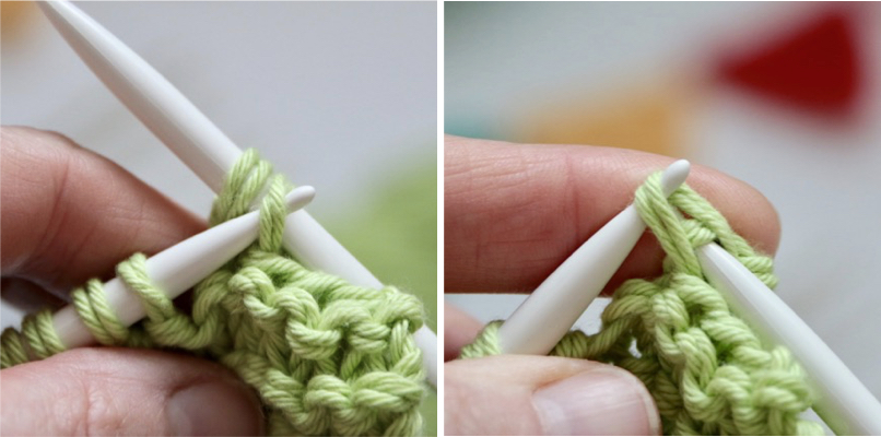 Now this is where I think these tips come into their own. Any time you want to manipulate the stitches at all, you lift them with the very end of the needle and they sit in that little dip just behind the 'hook' (or teardrop) and feel like they are not going to go anywhere at all.