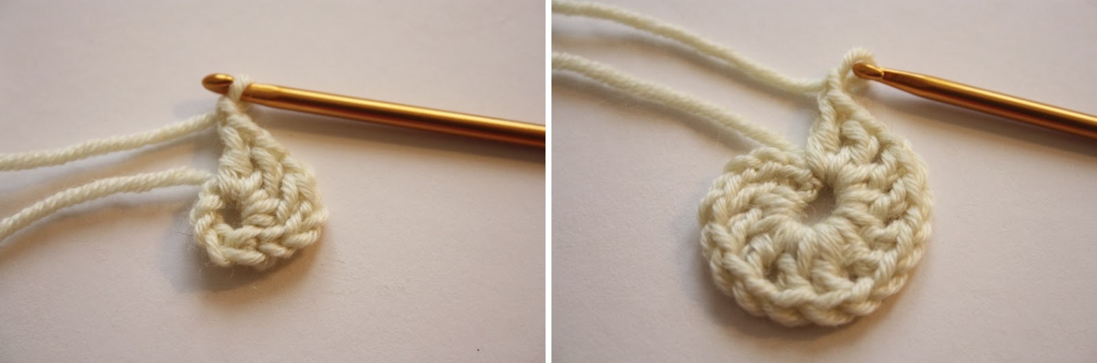 Do this all the way around the circle and make a slip stitch (ss) into the first dc to complete the round.