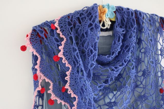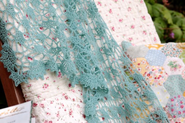 I do remember that I haven't really shown you this shawl yet. Not properly anyway. I was wearing one version in my May podcast and then I think I showed you this one pre-blocking, so it was a bit of a crumpled heap at the time.