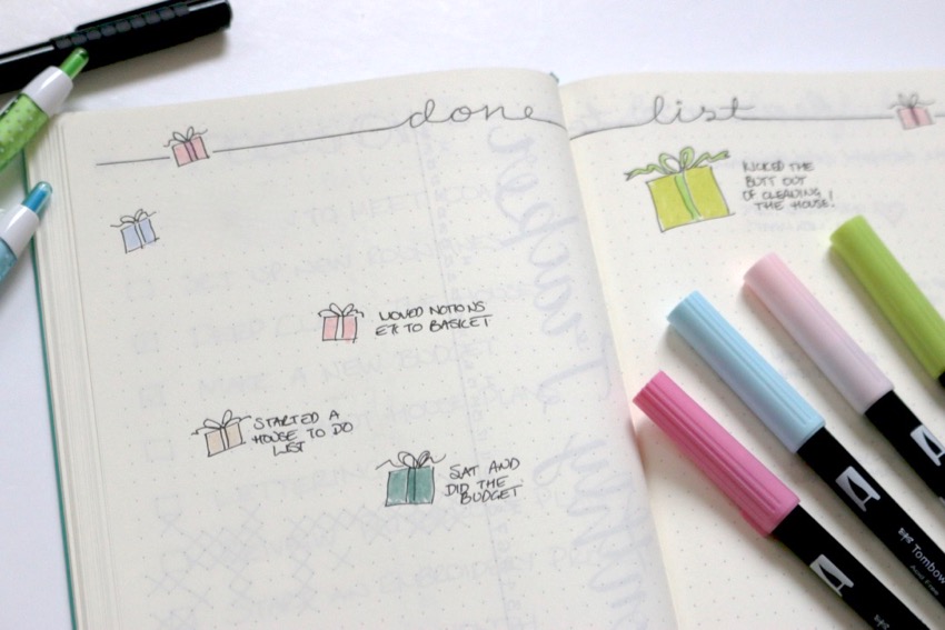 So I made a page for a 'done' list, to note down what I did do this month. The to-do list may look a little light on ticks sometimes, but this page will help remind me that doesn't mean I didn't achieve anything.