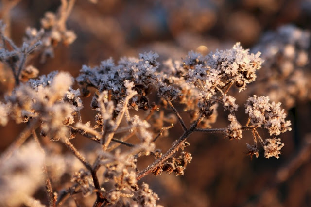 I'm also sharing some of the frosty pictures.  I haven't got any of the snow yet, I'm afraid, but I particularly like the long crystals you can see on the bush with yellow leaves.